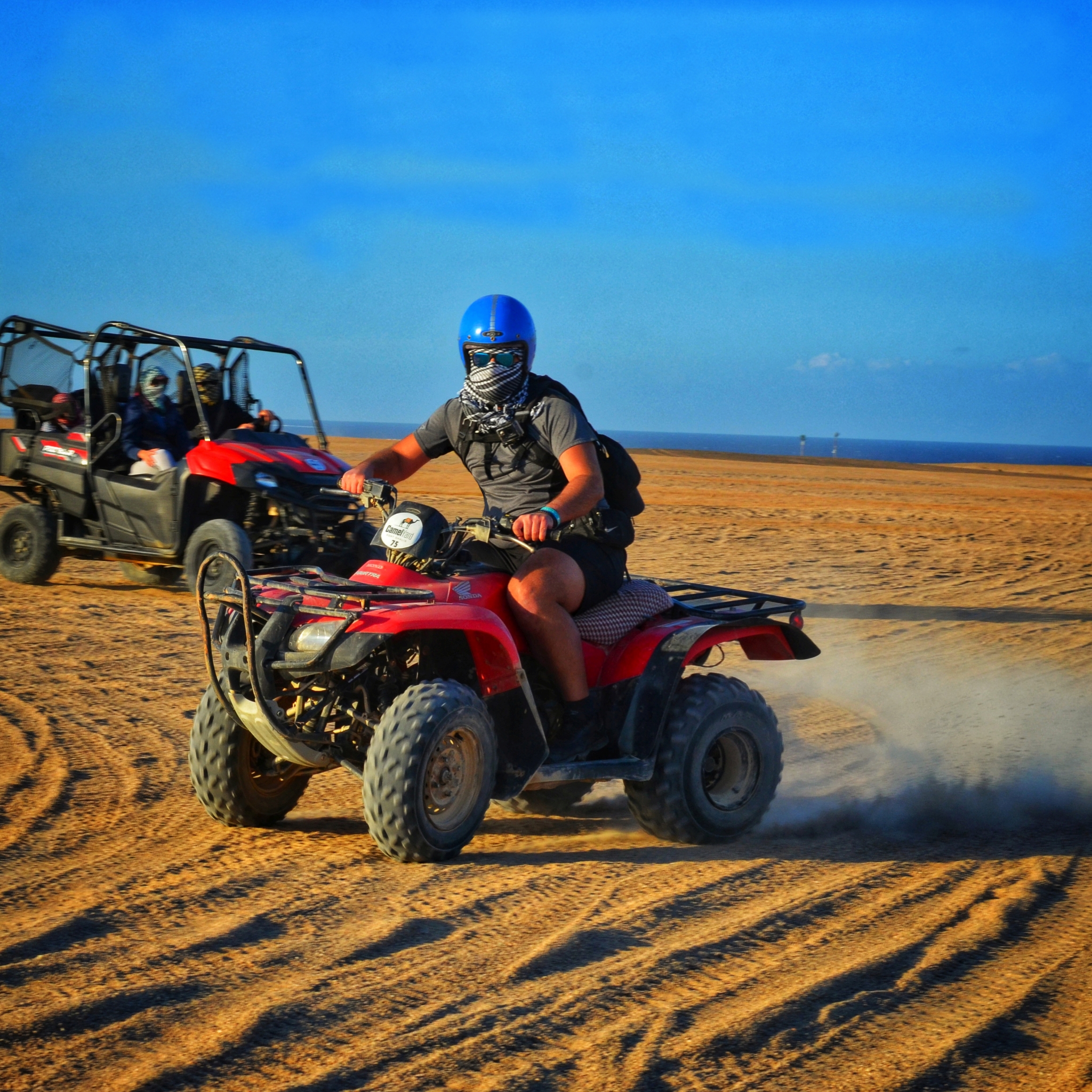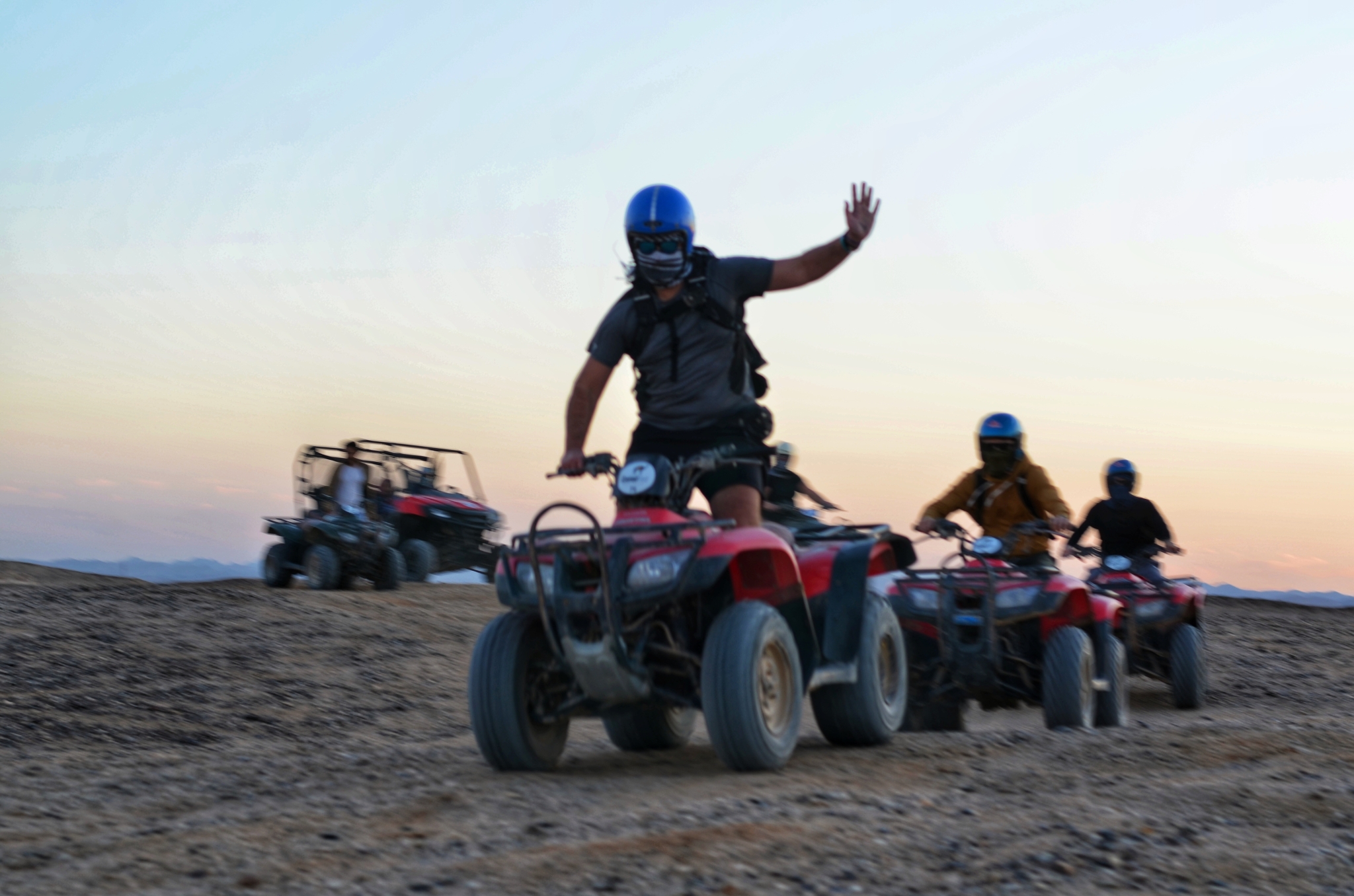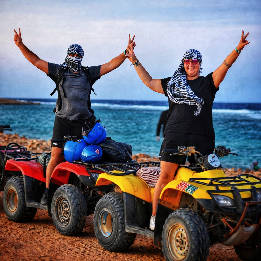 🏜️ A kiedy słońce zaczęło powoli chować się za horyzont, przyszedł czas na quady i pustynną przygodę. Jazda po piasku, lekki kurz unoszący się w powietrzu i zachód słońca nad pustynią, który wyglądał jak kadr z filmu. Trudno to opisać słowami – to jeden z tych widoków, które zostają w głowie na długo.