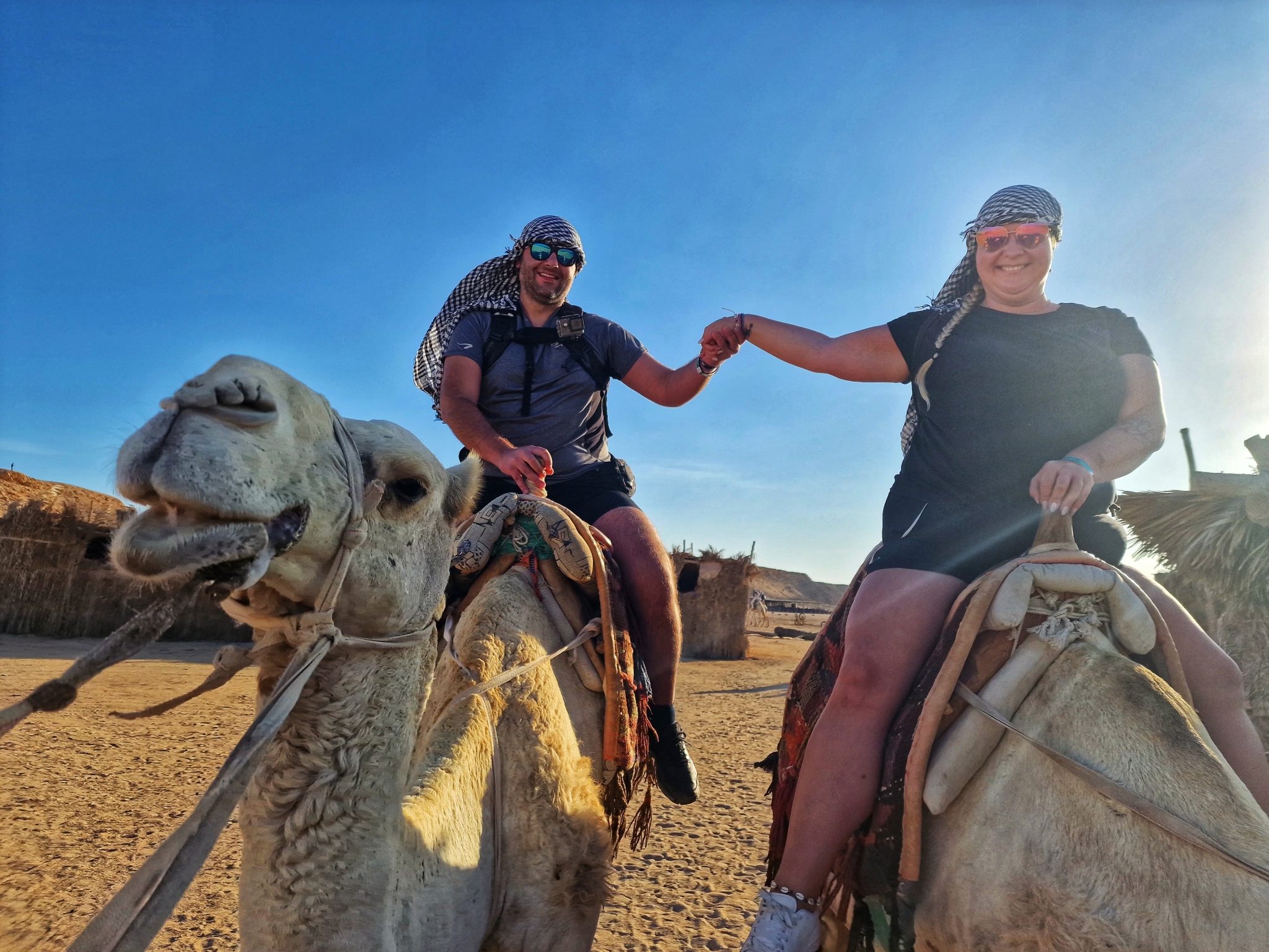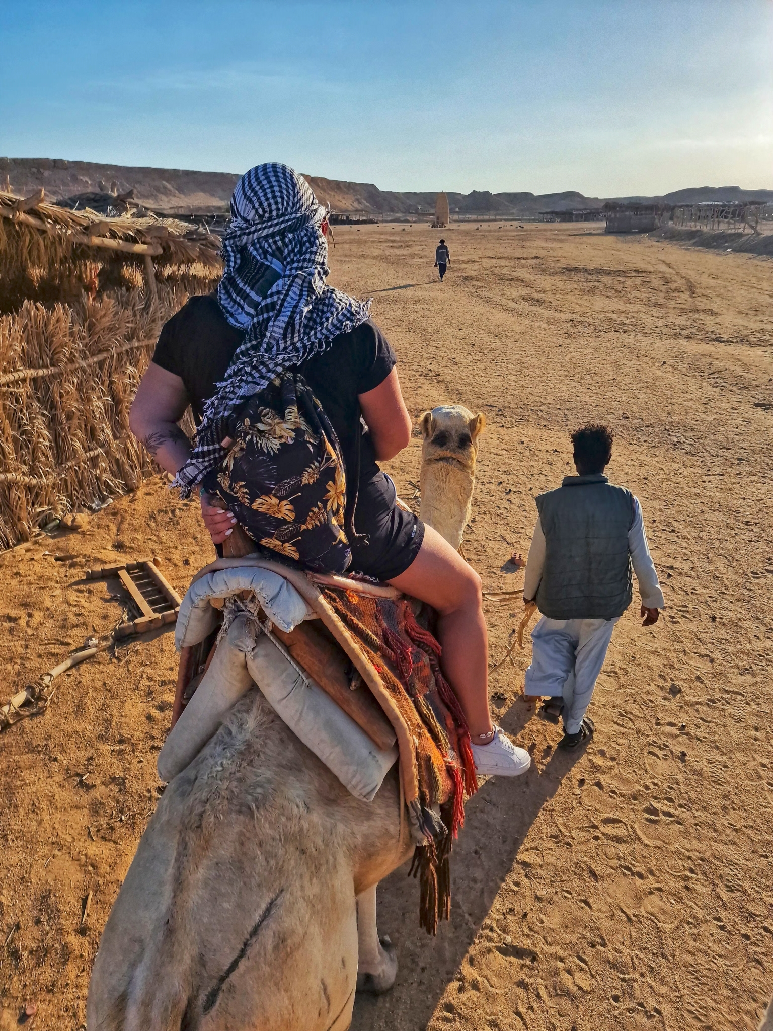 🐪 Poza terenem hotelu przyszła pora na coś zupełnie nowego – pierwsza w życiu przejażdżka na wielbłądzie. Spokojny rytm, pustynny krajobraz i świadomość, że robi się coś po raz pierwszy – bez pośpiechu, bez planu, po prostu tu i teraz.